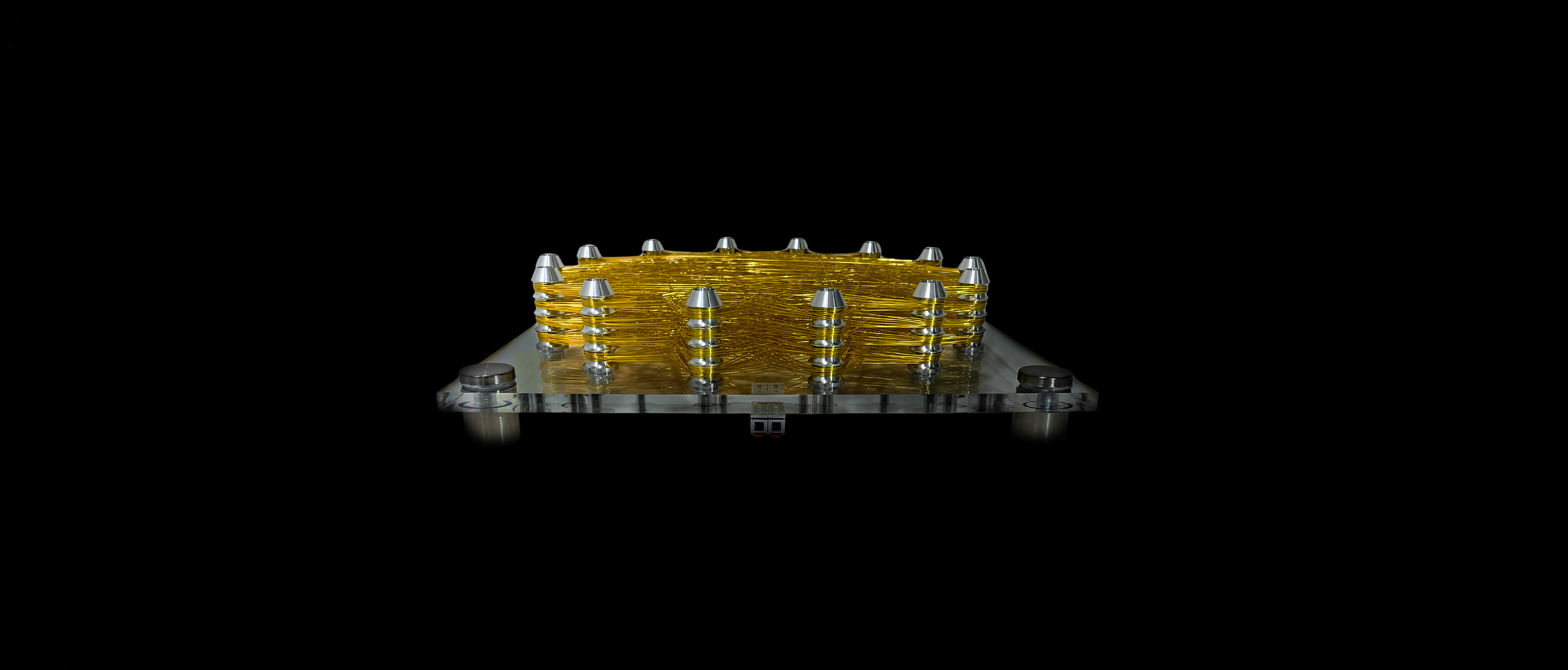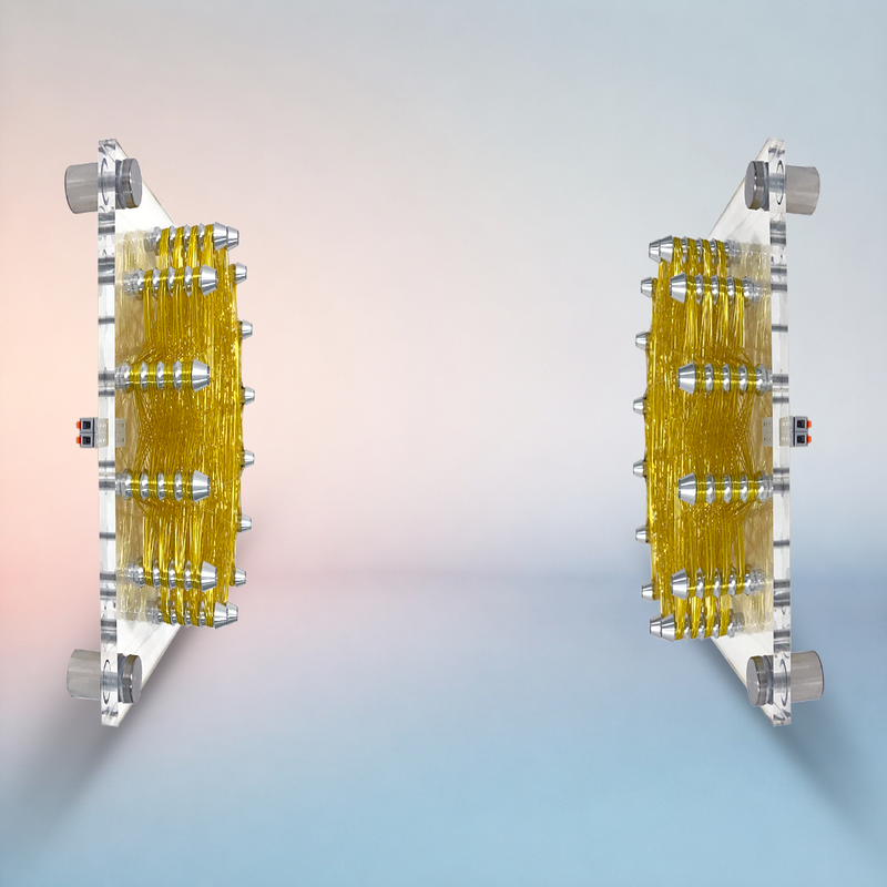 The coils create a magnetic field that fills the room. Just place them nearby and turn them on — no contact needed.